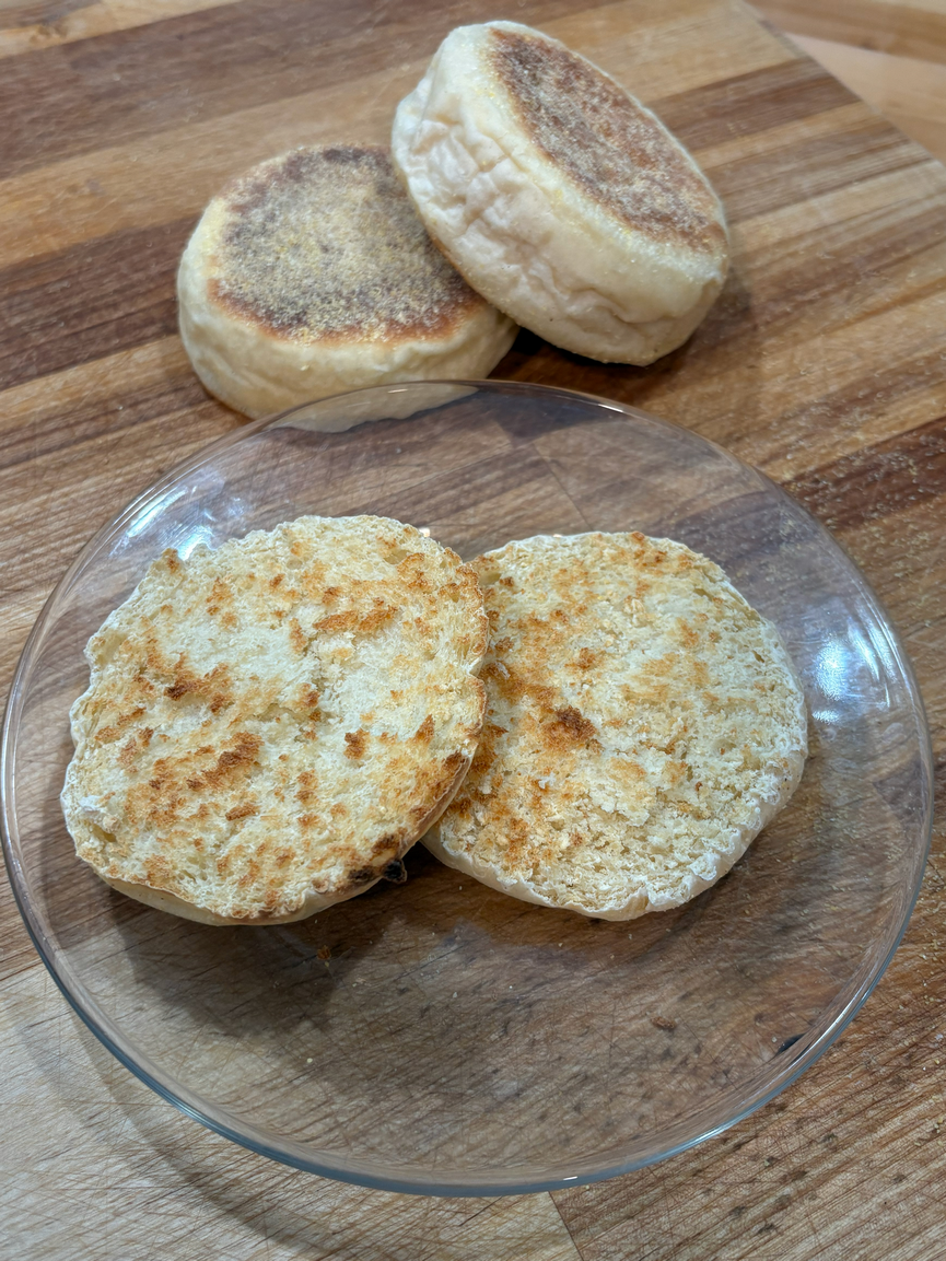 Gorgeous muffins cooked to perfection on a cast iron griddle with a tender interior. Ready for you to char your way in your toaster. We prefer 1/2 size nooks and crannies so the roof of your mouth isn't shredded while eating. Pk of 6